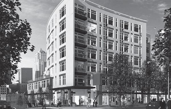 The Landes is an example of a five-story woodframe building over two stories of concrete, a common construction type for Seattle, but not San Francisco.