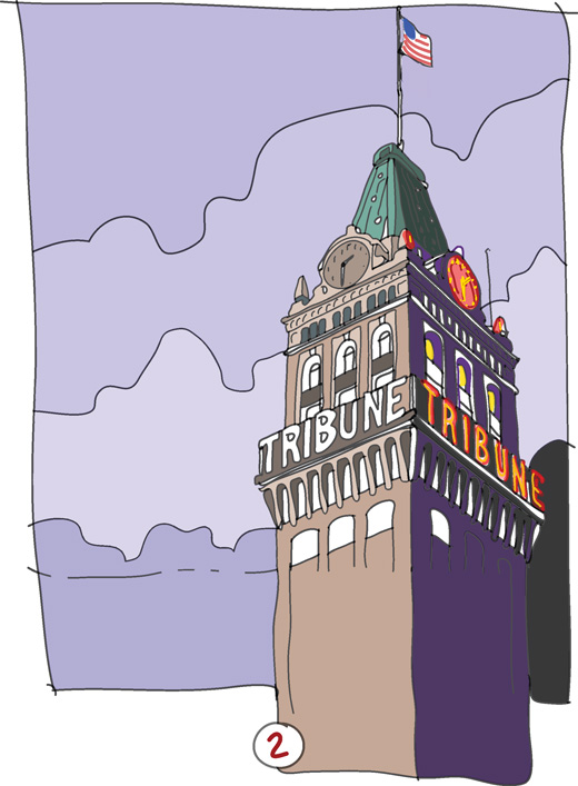 Oakland’s Tribune building, an official historical landmark, was erected in 1923, including 21 floors and standing 310 feet tall. Architect Edward Foulkes designed a tower of mixed French and Italian classical elements, topped with a copper green mansard roof with punched eye windows. I wonder how one might reverse the hands of time on the tower clock, and glimpse back at some of the myriad tales printed in the newspaper over the last 80 years. With some building upgrades and new ownership, the red glow of the “TRIBUNE” sign in the night sky and the distinctive analog hands of the clock point to the future of the city.